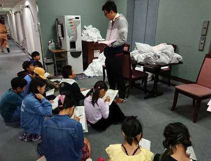 修学旅行速報【10月24日(火)の6年生】 公開日 2017/10/24 更新日 2017/10/24 6年 部屋長会で、今日の日程の確認がありました。今日の目標は、「時間を守ることです」。このあと、朝ごはんになります。