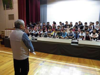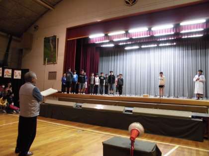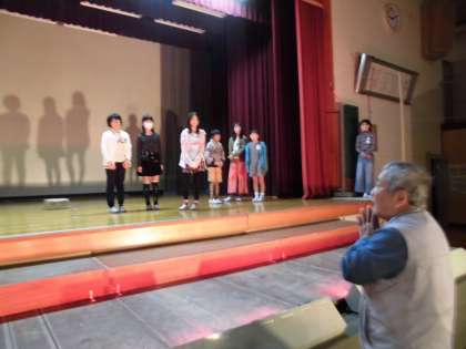 劇団たんぽぽの方を招いて、演劇指導をしていただきました。全体を通して見ていただいた後、アドバイスをしていただいた学年もあれば、場面ごとに区切って指導をしていただいた学年もありました。