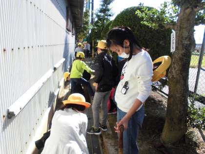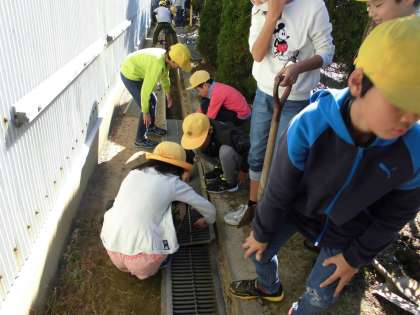全校草取りをしました。5年生はみんなで側溝をきれいにしました。