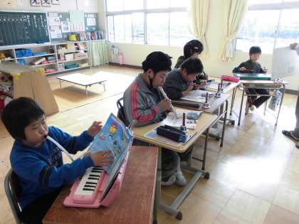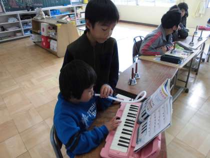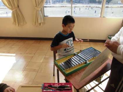 合奏をしました 【11月3日(金)のたんぽぽ】 公開日 2017/11/04 更新日 2017/11/04 たんぽぽ ハンドベル、リコーダー、木琴、鍵盤ハーモニカなどの楽器を使って、いろいろな曲を合奏しました。