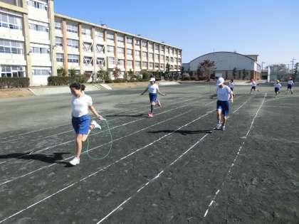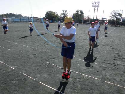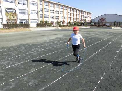 体育の時間になわとびをしました。前回よりもたくさんとべるようになった子がたくさんいました!!頑張って練習しています。なわとびランニングもしました!!