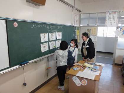 楽しい英語の授業【11月6日(月)の3年生】 公開日 2017/11/07 更新日 2017/11/07 3年 久しぶりに英語の授業がありました。“What sport?”について勉強しました。いろいろなスポーツがあり、とても楽しく勉強することができました。