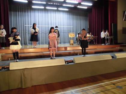 いよいよ仕上げです 【11月7日(火)の3年生】 公開日 2017/11/07 更新日 2017/11/07 3年 今日の学芸会練習は、衣装を着ての練習をしました。本番のつもりで通し練習をしましたが、まだまだ台詞があとつまってしまうところもありました。今日の反省をしっかりして、本番に備えたいですね。