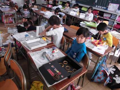 秋のおもちゃをつくろう 【11月7日(火)1年生】 公開日 2017/11/07 更新日 2017/11/07 1年 生活科の学習で、秋見つけをしました。自分たちが見つけた、木の実や落ち葉などを使って、楽しいおもちゃを作っています。どんなおもちゃができるか楽しみですね。
