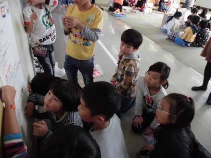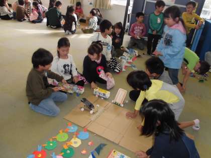 おもちゃまつり 楽しかったよ【11月7日(火)1年生】 公開日 2017/11/07 更新日 2017/11/07 1年 今日は、2年生のおもちゃまつりに参加させてもらいました。楽しいゲームがいっぱいあって、盛り上がりました。 優しく教えてもらったので、楽しめました。2年生のみなさん、ありがとうございました。