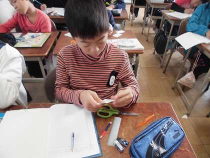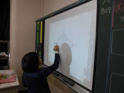 算数の時間【11月7日(火)の5年生】 公開日 2017/11/07 更新日 2017/11/07 5年 算数の時間です。今日はひし形の面積の公式を考えました!!教科書に載っていないやり方を考えている子が多くいて、すごい!!とびっくりする場面もありました。