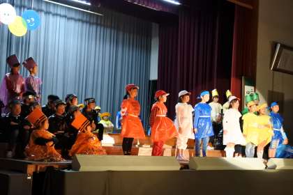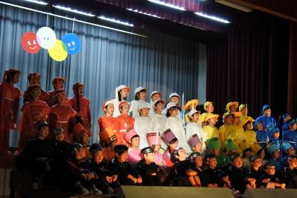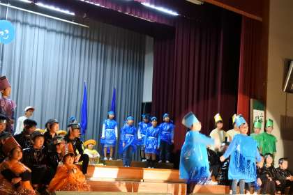 がんばった学芸会その3(11月11日(土))の2年生 公開日 2017/11/11 更新日 2017/11/11 2年 どの色の役も元気よく歌ったり、旗を振ったり、踊ったりすることができました。お家の方に見て頂けるということで、前を見て堂々とセリフを言っていました。