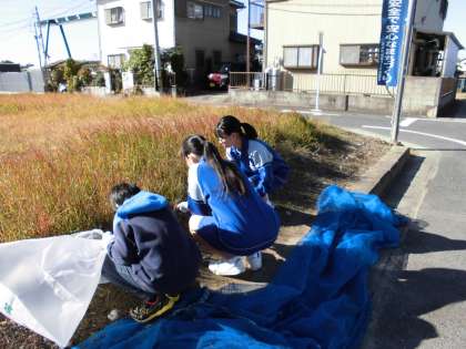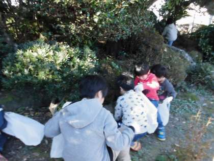 地域の方や家族と一緒に公園の落ち葉を集めたり、道端のゴミを拾ったりしました。