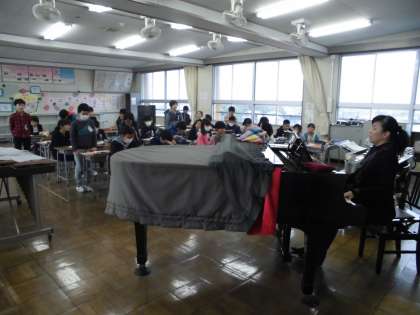 音楽の時間に赤とんぼを歌いました。自分が何番の歌詞を歌うか決めて、それぞれ練習をしていました。