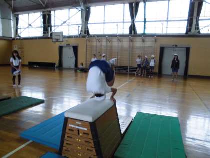 久しぶりの屋運体育 【11月14日(火)の4年生】 公開日 2017/11/14 更新日 2017/11/14 4年 学芸会の会場になっていたこともあり、久しぶりに屋内運動場で体育を行いました。台上前転も上手にできる人が多くいて、ブランクを感じさせない授業となりました。