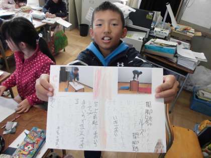 国語の時間には、アップで撮られた写真や、ルーズで撮られた写真を活用して、跳び箱リーフレットを作っています。完成した人も出始めています。これを読めば、跳び箱運動はバッチリ!?