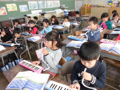 鍵盤ハーモニカを使って 【11月17日(金)の1年生】 公開日 2017/11/17 更新日 2017/11/17 1年 鍵盤ハーモニカを使って「きらきらぼし」を弾く練習をしました。新しく「ラ」の音の弾き方を教えてもらいました。上手に弾くことができたかな?