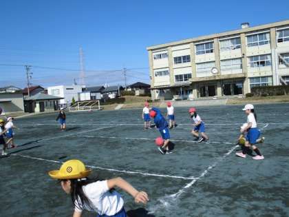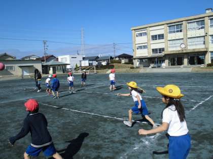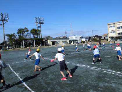 今日は気持ちが良い晴天が広がりました。はしごドッジボールでは、上手に投げたり、ボールを上手によけたりできる人が増えてきました。