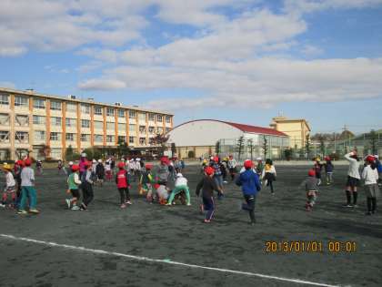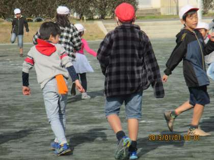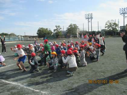 ふれあいタイムに4年生と一緒にしっぽとりゲームをして遊びました。