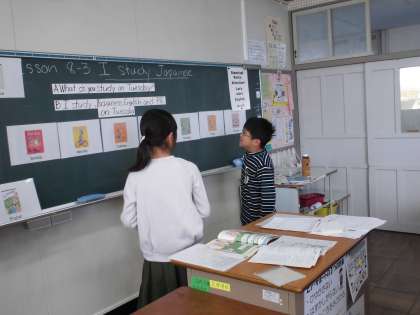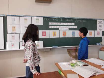 曜日と教科の学習をしました【11月21日(火)の4年生】 公開日 2017/11/21 更新日 2017/11/21 4年 今日の英語の時間は曜日と教科の学習をしました。曜日の歌を歌ったり、前に出てきてペアで質問をし合ったりたくさんの言葉を覚えようとがんばりました。