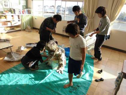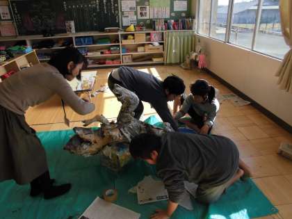 教育展作品作り【11月21日(火)のたんぽぽ】 公開日 2017/11/21 更新日 2017/11/21 たんぽぽ 新聞をちぎったり、のりをつけたり、形を整えたりとみんなで協力して作品作りを楽しんでいます。