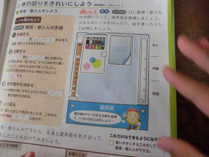家庭科の時間【11月21日(火)の5年生】 公開日 2017/11/21 更新日 2017/11/21 5年 家庭科の時間の様子です。今日は「そうじ名人になろう」というめあてで勉強をしました。お道具箱の整理整頓の仕方を考えました。