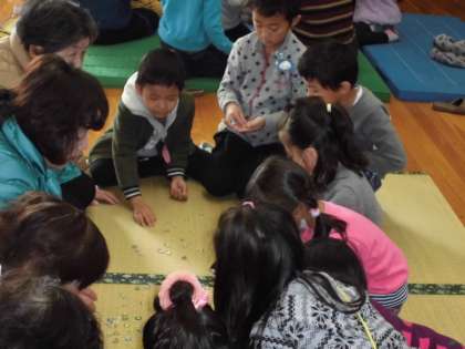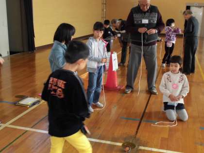 昔遊びの会 その3【11月21日(火)1年生】 公開日 2017/11/21 更新日 2017/11/21 1年 おはじきでは、初めて遊び方を知った子も多くいて、大喜びでした。お手玉は、投げる手とキャッチする手があり、難しかったようです。コマ回しは、ひもの巻き方や投げ方のこつを教えてもらい、ずいぶん上達しました。 地域の方とふれあい、一緒に遊ぶ活動は、子どもたちにとって、貴重な経験になりました。ご協力、ありがとうございました。
