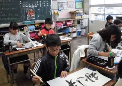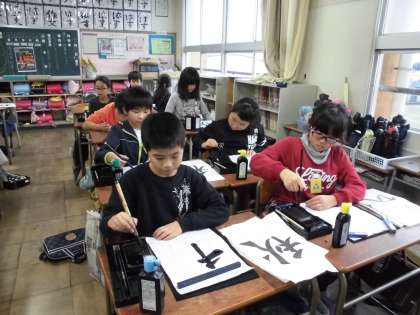 「秋」という字を書きました【11月22日(水)の4年生】 公開日 2017/11/22 更新日 2017/11/22 4年 今日の書写の時間は秋という字を学習しました。左右のバランスや、横画のバランスに気をつけて真剣に書きました。