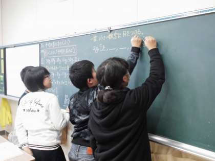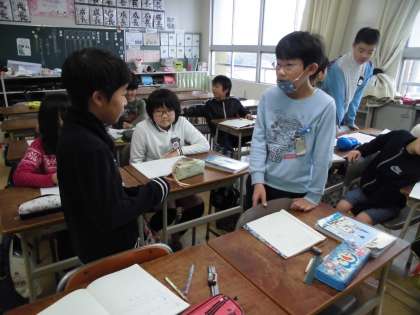 算数の時間【11月29日(水)の5年生】 公開日 2017/11/29 更新日 2017/11/29 5年 算数の時間の様子です。ペアで意見を言い合ったり、前でみんなに説明したり、いろいろな方法を使って、勉強しています。