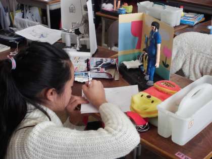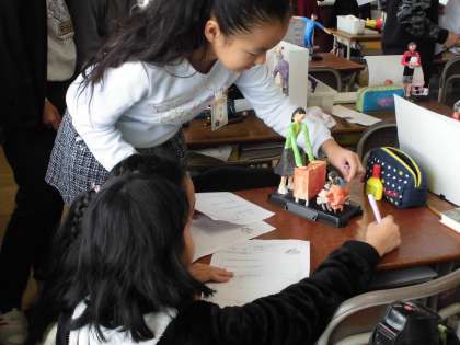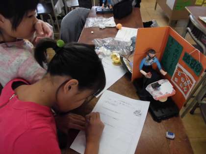 完成した作品を鑑賞しました。友達の作品の良いところをたくさん見つけることができました。