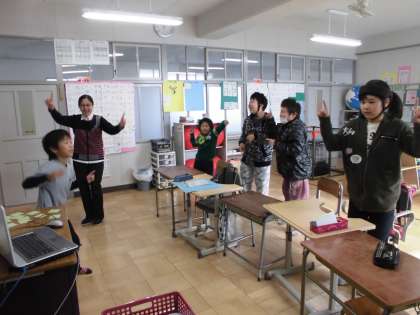 ALTの先生の英語の授業がありました。とても楽しく果物の名前を発音して覚えることができました。