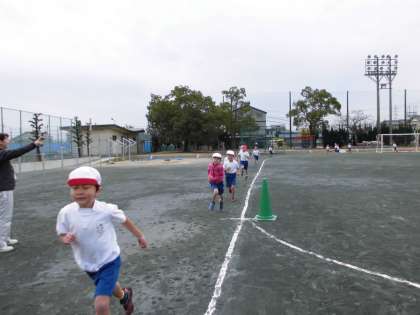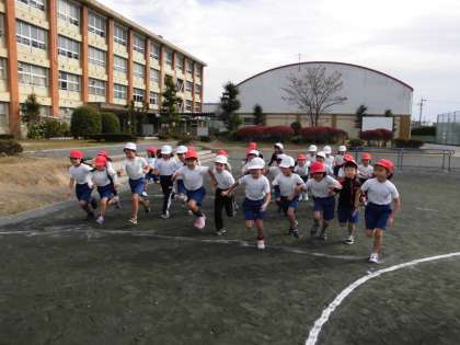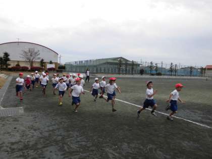 今日の体育は、1・2組合同で持久走大会の試走をしました。初めてコースを走りましたが、間違えずに全員がゴールできました。ジョギングタイムで練習して、もっと速く走ることができるようになるといいですね。