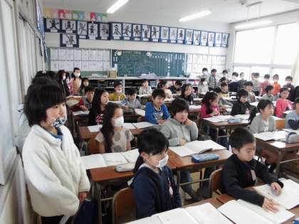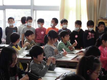 2年生の教室訪問 その1【3月15日(木)の1年生】 公開日 2018/03/15 更新日 2018/03/15 1年 2年生の教室を見に行きました。みんな真剣に算数の勉強をしていました。 3階までの階段を歩き、2年生で使うトイレや配膳室も見学しました。