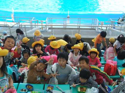 名古屋港水族館へ校外学習に行ってきました!天気にも恵まれ、イルカショーを楽しく見学しました。イルカの大技に歓声をあげ、大喜びの子ども達でした。そこで、おいしくお弁当もいただきました。