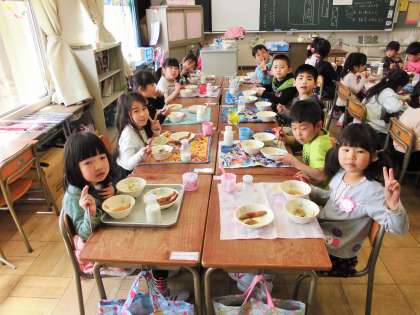 食育の日 【4月19日(木)】 公開日 2018/04/19 更新日 2018/04/19 校長室より 一宮市では毎月19日を「食育の日」として、望ましい食生活、食習慣の育成をめざして指導を進めています。学校では給食の時間が一番身近な食育の時間。命をいただくことへ感謝、作ってくださる方への感謝の気持ちを込めて、毎日いただくようにしています。 写真は、一宮市教育研究会 食育・給食部会で毎月作成している保護者向け食育広報紙「やっぱり!!食ぱわー(4月号)」と給食の様子です。