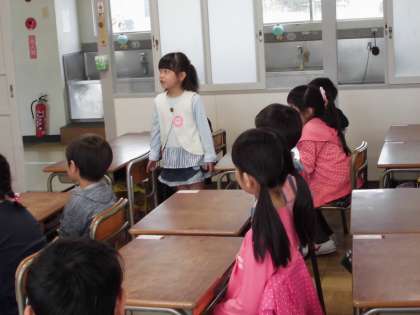 楽しかった自己紹介や読み聞かせ〔4月11日(水)の1年生】 公開日 2018/04/11 更新日 2018/04/11 1年 好きな食べ物を大きな声で言いました。お寿司や果物が好きな子が多かったです。聞くときは、話している人を見ることもできました。読み聞かせも嬉しそうに聞いていました。