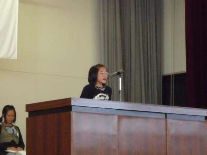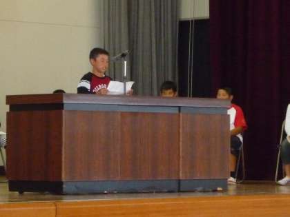15(木)に後期児童会役員選挙の立会演説会がありました。6人が立候補し、自分が役員になったら、学校のために何をしたいかなどを演説しました。