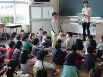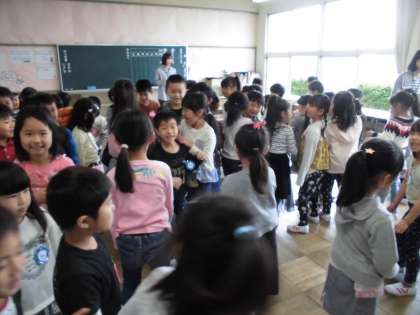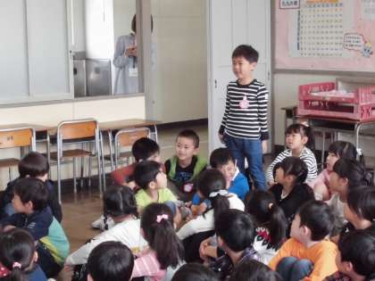 楽しかった わくわくタイム〔4月12日(木)の1年生〉その1 公開日 2018/04/13 更新日 2018/04/13 1年 今日は、1組と2組と一緒にわくわくタイムを過ごしました。健康観察のときに好きなものをも言いました。自己紹介ゲームでペアを作り、じゃんけんしたり名前を言い合ったりして、みんな笑顔いっぱいでした。