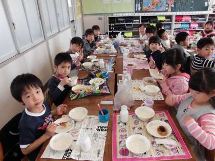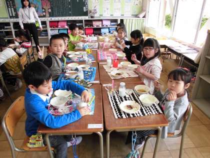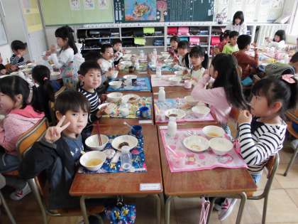 お祝いデザートもおいしかったよ【4月12日(木)の1年生】その1 公開日 2018/04/13 更新日 2018/04/13 1年 今日は、1年生の入学のお祝いに「お祝いゼリー」出ました。とってもおいしかったね。