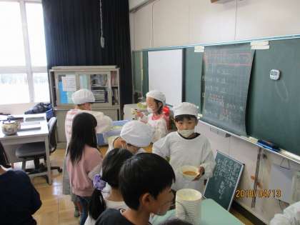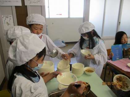 協力してできている給食当番【4月13日(金)の3年生】