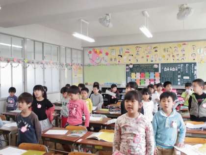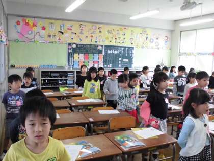 はじめて校歌を歌いました。大きな声で歌うことができました。