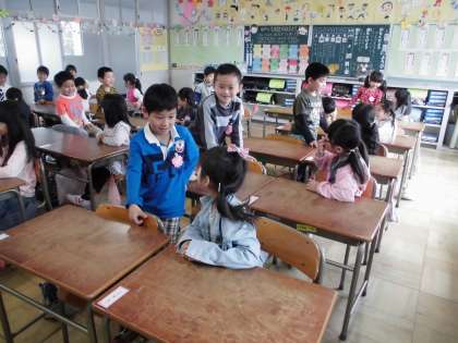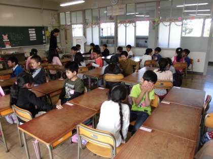 二人一組になって話を聞きました。名前を呼ばれたら返事をし、していることをやめ、相手の方に体を向け、うなずきながら最後まで話を聞くことができました。聞き上手になって、話を聞いてもらった後、「もっとうれしい気持ちになった。」「話して楽しくなった。」と感想を言いました。すてきな話の聞き方で友達と話をすると、もっとなかよくなれそうですね。