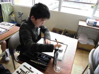 6年生になって初めての習字です。姿勢と筆の持ち方を改めて確認しました。