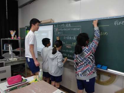 社会科の時間です。みんな楽しく勉強ができています。歴史、楽しいね〜!!
