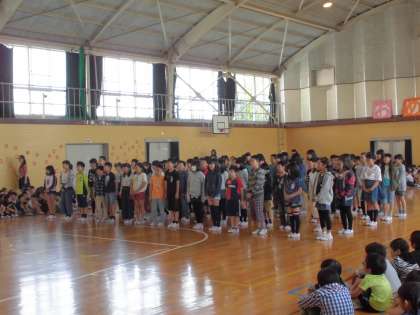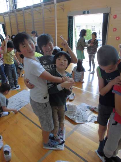 1年生を迎える会 【4月20日(金)の5年生】 公開日 2018/04/20 更新日 2018/04/20 5年 5年生の出し物は勇気100%の替え歌を1年生へ歌いました。 元気よく歌ってくれ、大きな拍手をもらいました。 ペアの新聞ゲームでは、お兄さんお姉さんとなり3年生と仲良く行うことができました。