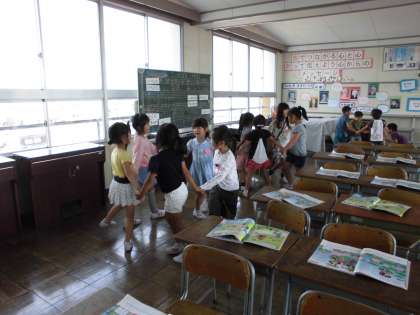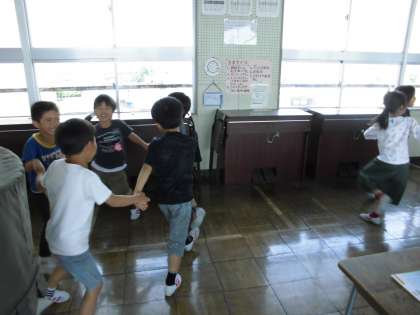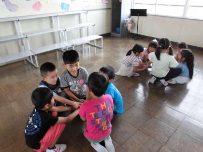 音楽教室で音楽の授業をやったよ【5月21日(月)の1年生】 公開日 2018/05/21 更新日 2018/05/21 1年 音楽室で音楽の授業をやりました。「つくえがおおきいよ。」「ひろいなあ。」「おおきいピアノがある。」と喜んでいました。「かごめかごめ」を輪になって歌いました。ひらいたりつぼんだりもしました。