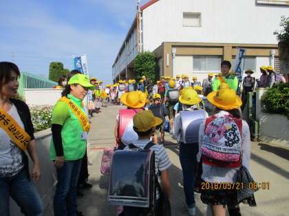 中学校なども協力して、あいさつ週間が始まりました。ボランティアとして、たくさんの人が校門前に立って、挨拶をしてくれました。