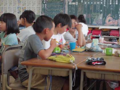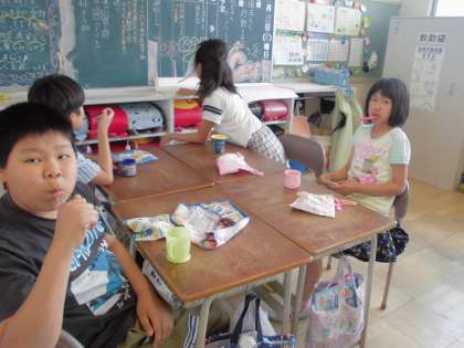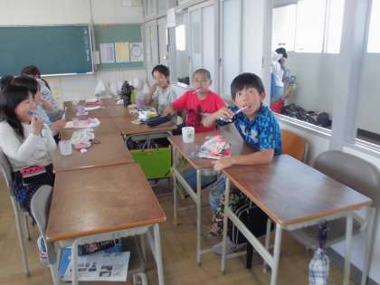 給食の後の歯磨きをきちんとして、健康な歯を保っていきます。 みんな真剣に磨いていました。