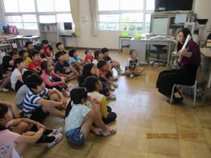 朝、読み聞かせがありました。話の世界に深く入り込んで聞いていました。