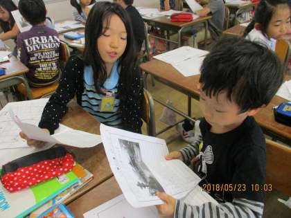 社会科のペア交流【5月23日(水)の3年生】