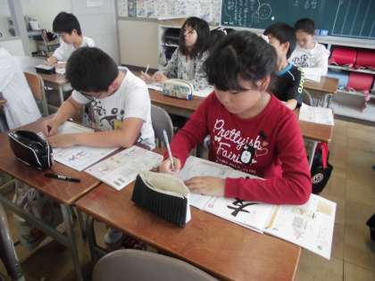 鉛筆の持ち方、姿勢を改めて確認しました。