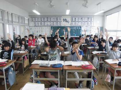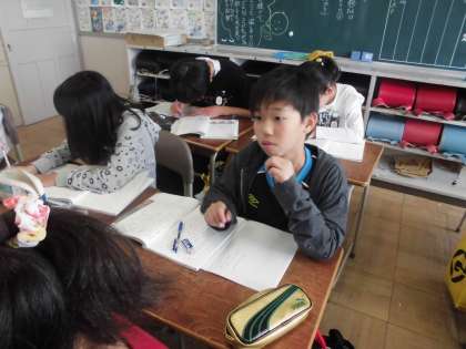 自分で考えて、ノートをまとめました。また、たくさんの子が積極的に挙手をしています。