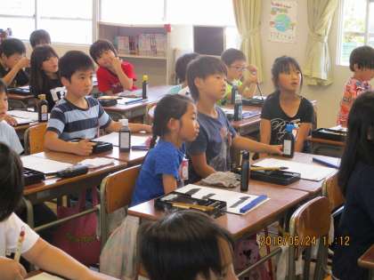 今日は、墨汁を使って「三」を書きました。