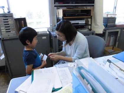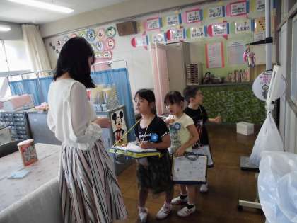友達と学校探検したよ【5月24日(木)の1年生】その4 公開日 2018/05/24 更新日 2018/05/24 1年 はじめは、恥ずかしそうに名前を言っていましたが、慣れてくると、先生の顔を見てしっかり言うことができました。