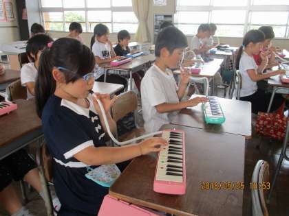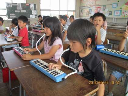 鍵盤ハーモニカを使って、曲をきれいにひきました。